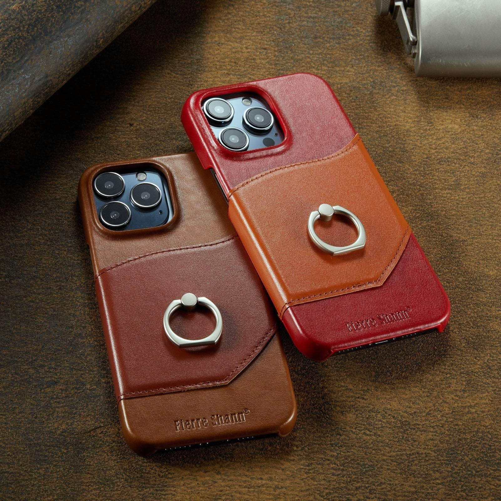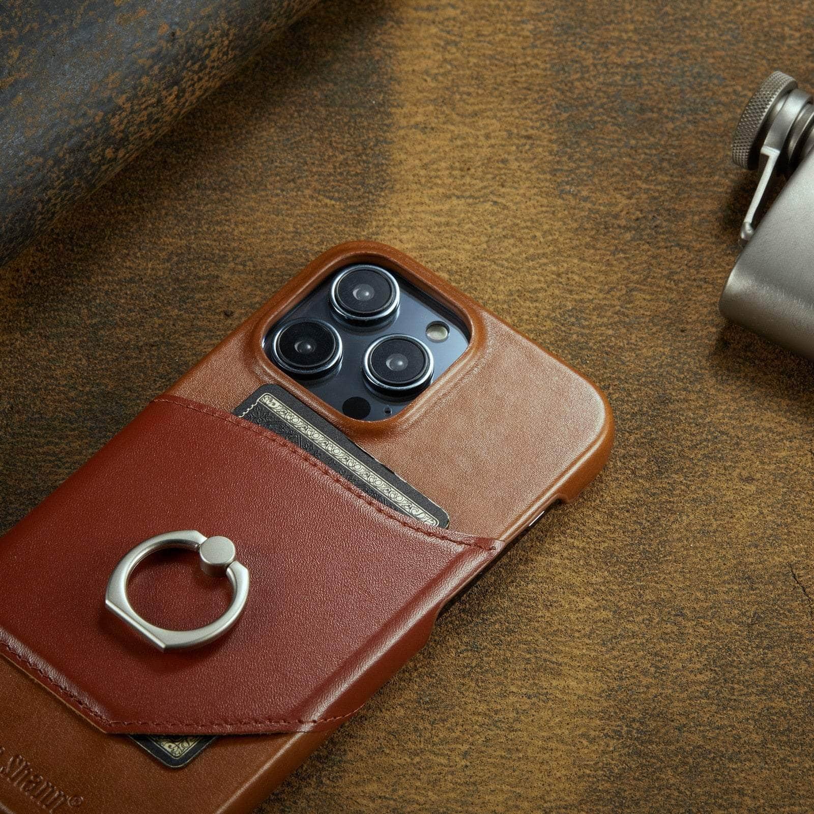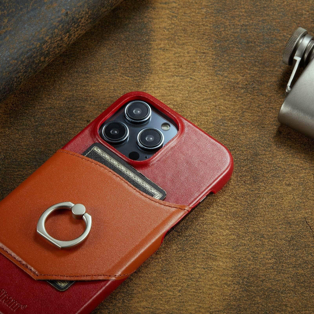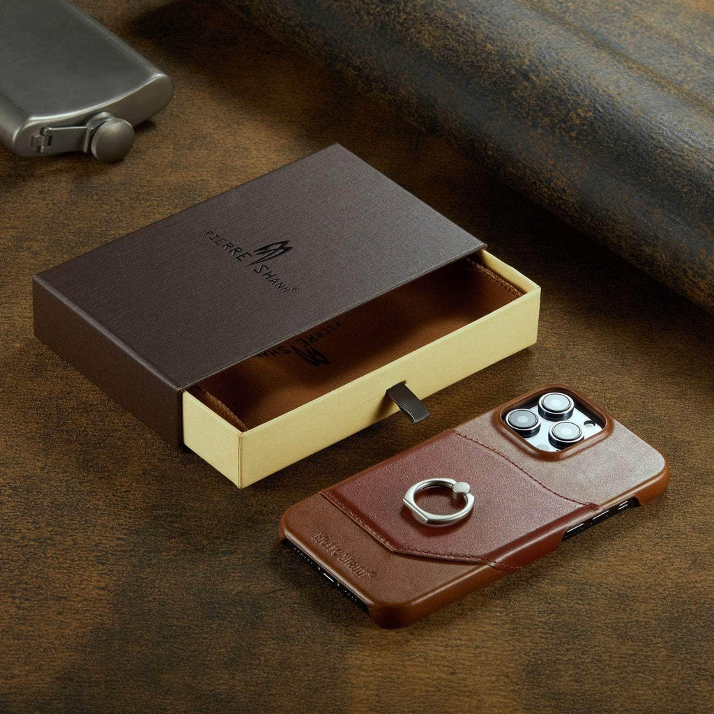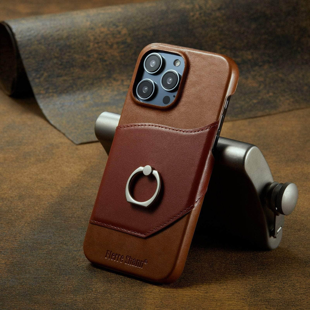 360° iPhone 15 Ring Kickstand Real Leather Cover