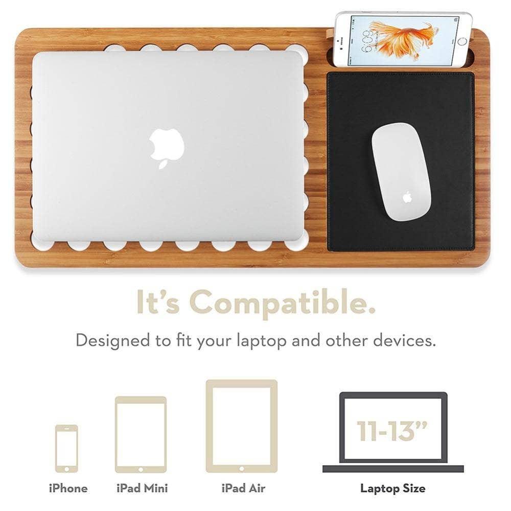 Bamboo Laptop Phone Desk Stand Holder Mouse Pad Multifunction Cooling Bracket