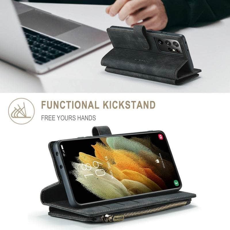 CaseMe Galaxy S22 Zipper Wallet Leather Case