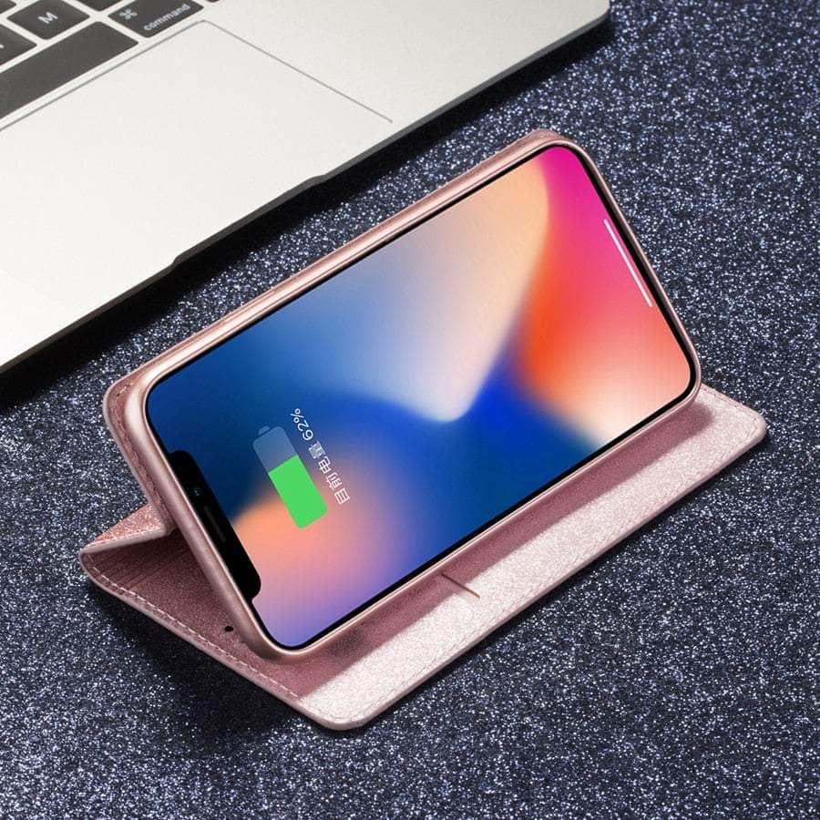 The Galaxy A14 Wallet Glitter Leather Case provides stylish and secure protection for your device. Crafted from a durable leather material, this case features a 3-card holder to store essential cards and cash. The foldable function allows the case to stand and provides a hands-free experience for media viewing.