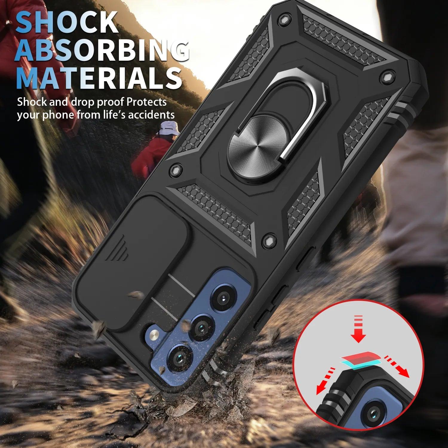 Introducing the Galaxy S24 Ring Holder Protection Case, the perfect combination of style and protection. This sleek case features a built-in ring holder for a secure and comfortable grip on your device. Made with durable materials, it provides reliable protection against drops and scratches. Upgrade your phone's style and protection with the Galaxy S24 Ring Holder Protection Case.