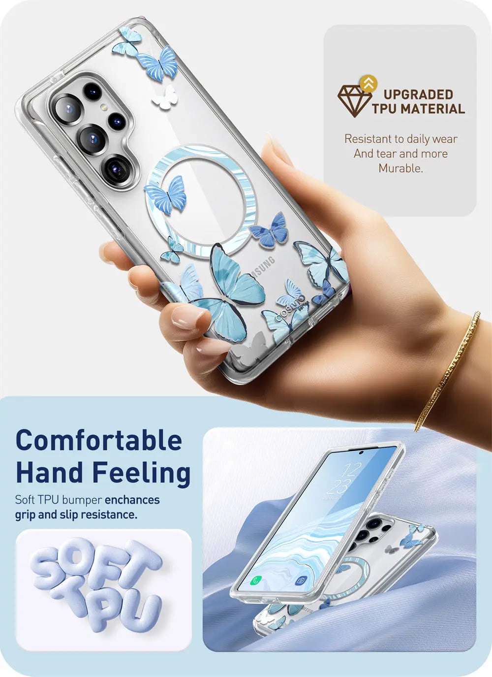 Introducing the Galaxy S25 Ultra I-BLASON Cosmo Mag Slim Protective Case - the perfect blend of style and protection. Featuring a slim design and magnetic closure, this case offers both convenience and practicality. Keep your phone safe while making a statement with the Cosmo Mag case.
