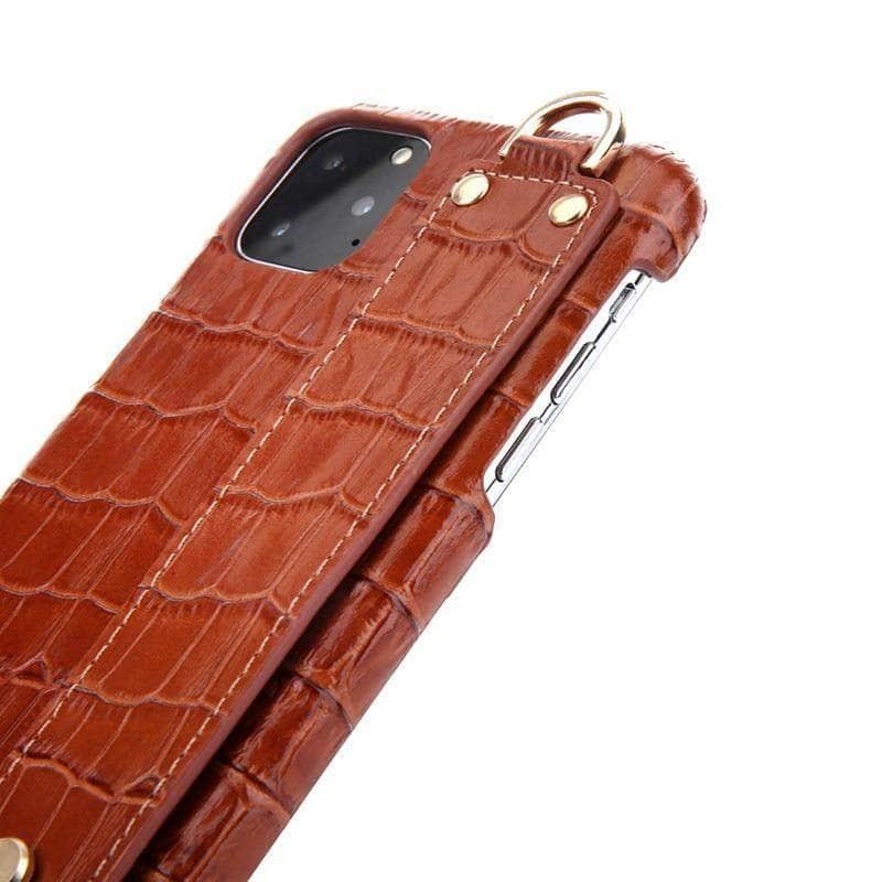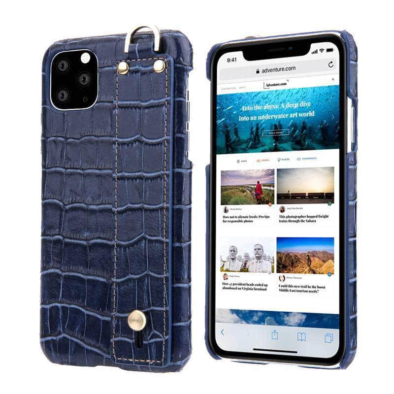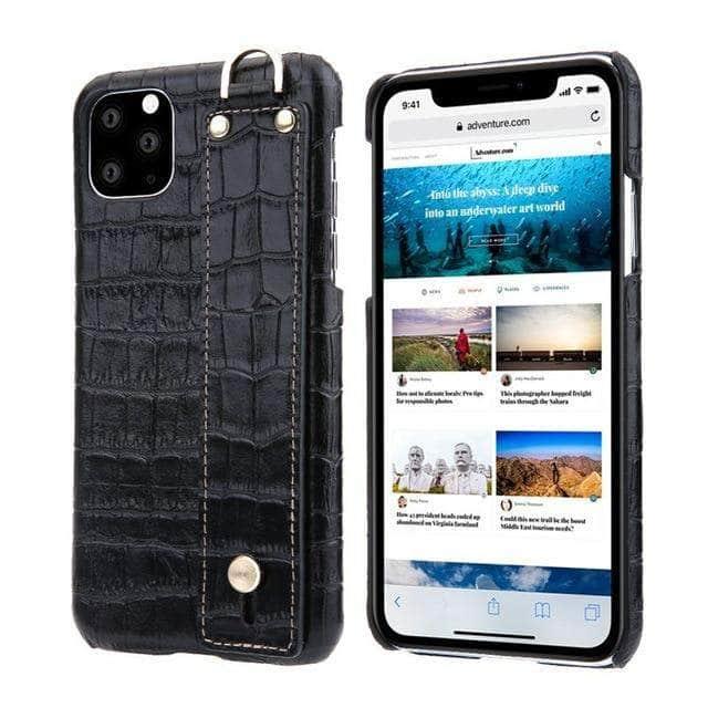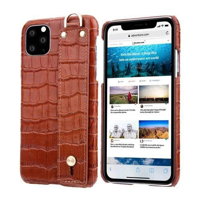 Genuine Leather Case iPhone 11 Pro Max Cover Irregular Protection Coque Casing Wrist Housing
