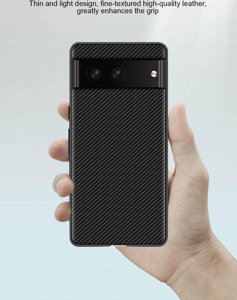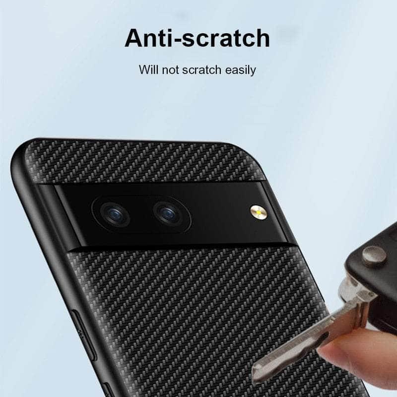 Protect your Google Pixel 8 with this slim, lightweight vegan leather case crafted from sturdy carbon fiber. Its protective material offers maximum protection from scratches and shocks, while its non-slip grip ensures your device stays secure. Expertly crafted for reliable protection.