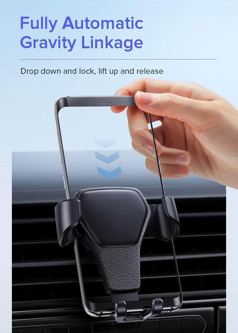 This Gravity Car Holder Phone Air Vent Clip will securely hold your phone in place while you drive. The unique gravity-activated clip design securely holds most phones without additional effort, so you can focus on the road without worry. Enjoy the convenience of easy one-handed operation.