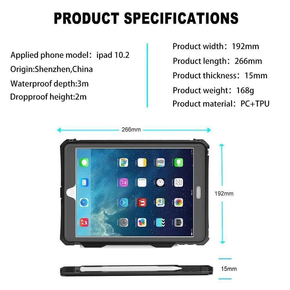 iPad 10.2 2019/2020 (iPad 7/8) Waterproof Case IP68 Protection Dustproof Shockproof Full Sealed
