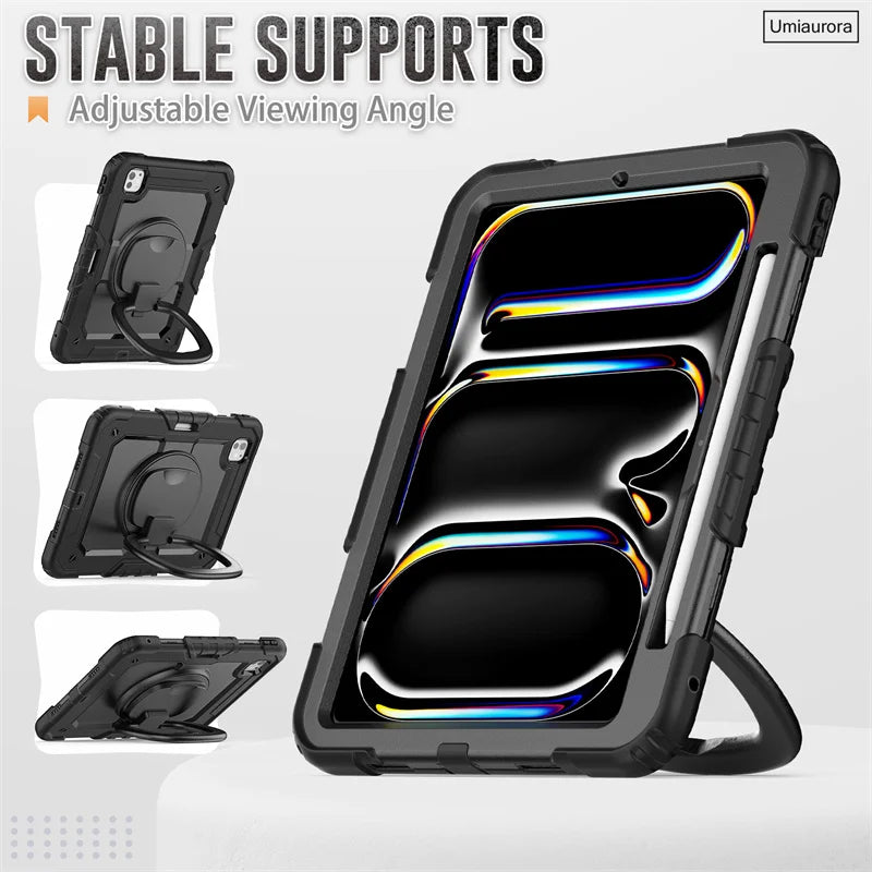 Protect your iPad Air 5 with our Heavy Duty Rugged Shockproof Stand Case. The durable design ensures your device stays safe against drops, while the built-in stand allows for convenient hands-free usage. Give your iPad the ultimate protection it deserves.