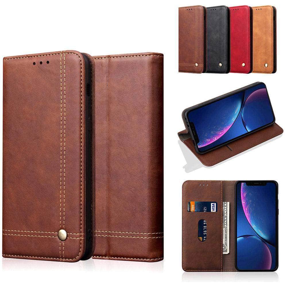 iPhone 11 Pro Max Retro Crazy Horse Pattern PU Leather Flip Stand Wallet Case with Card Slot Shockproof Fundas