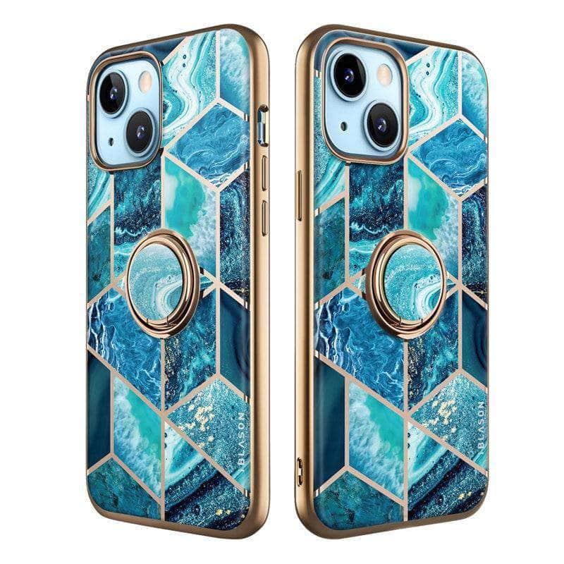 iPhone 13 I-BLASON Cosmo Snap Marble Ring Holder Case