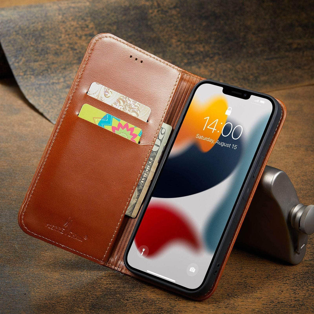 iPhone 14 Plus Real Genuine Leather Magnetic Flip Cover