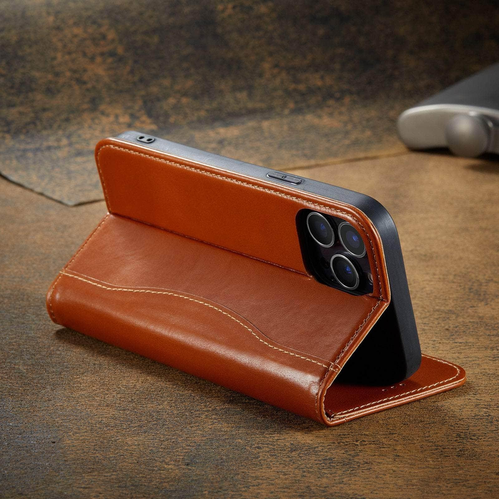 iPhone 14 Pro Max Real Genuine Leather Magnetic Flip Cover