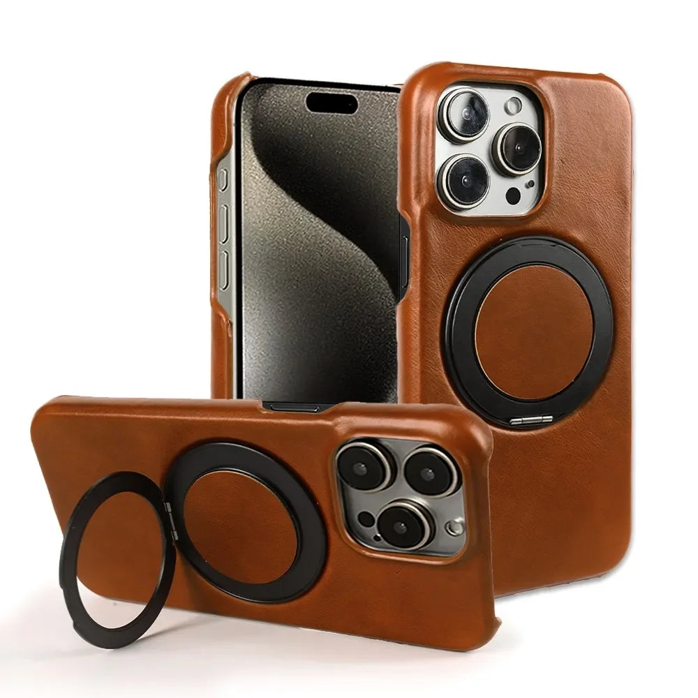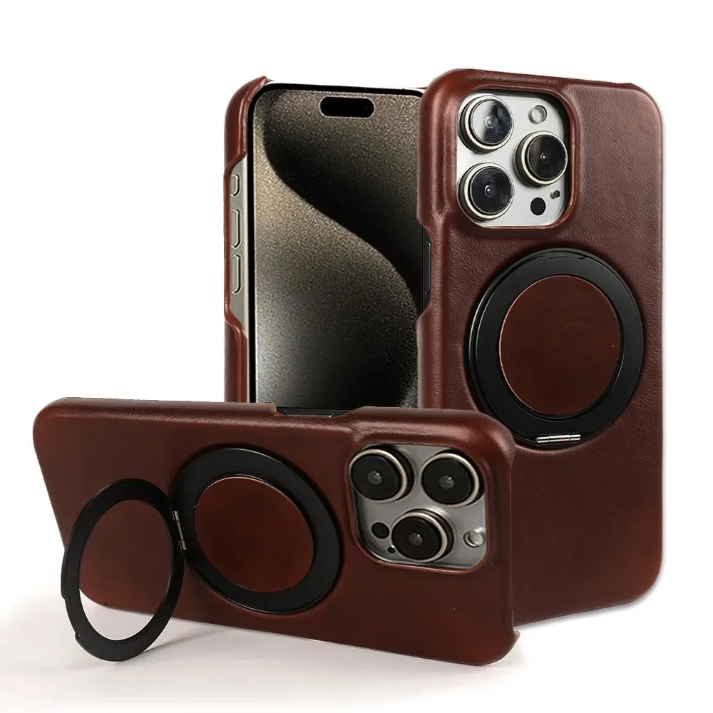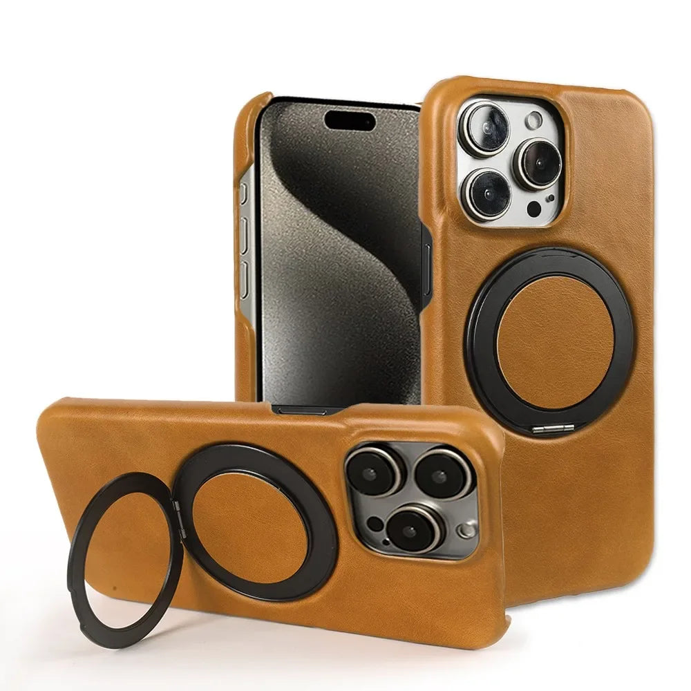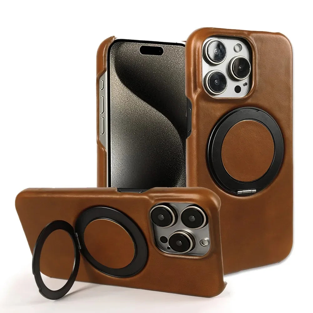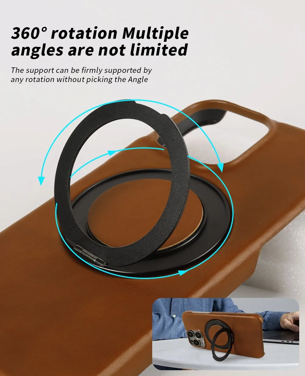 360° Rotating Magnetic Holder case: Magnetic Ring Genuine Leather Case