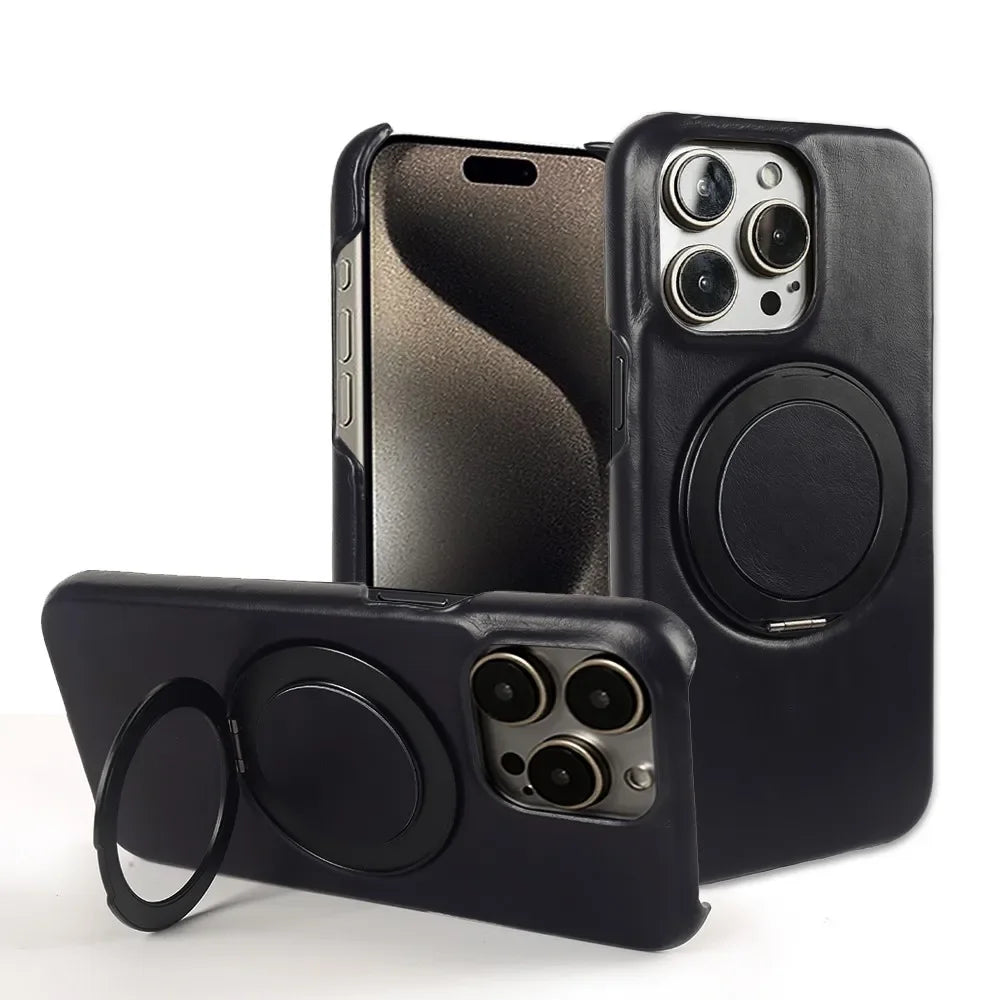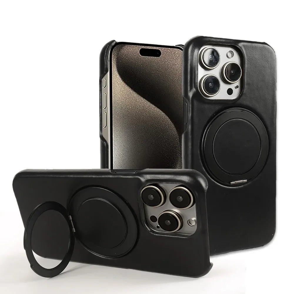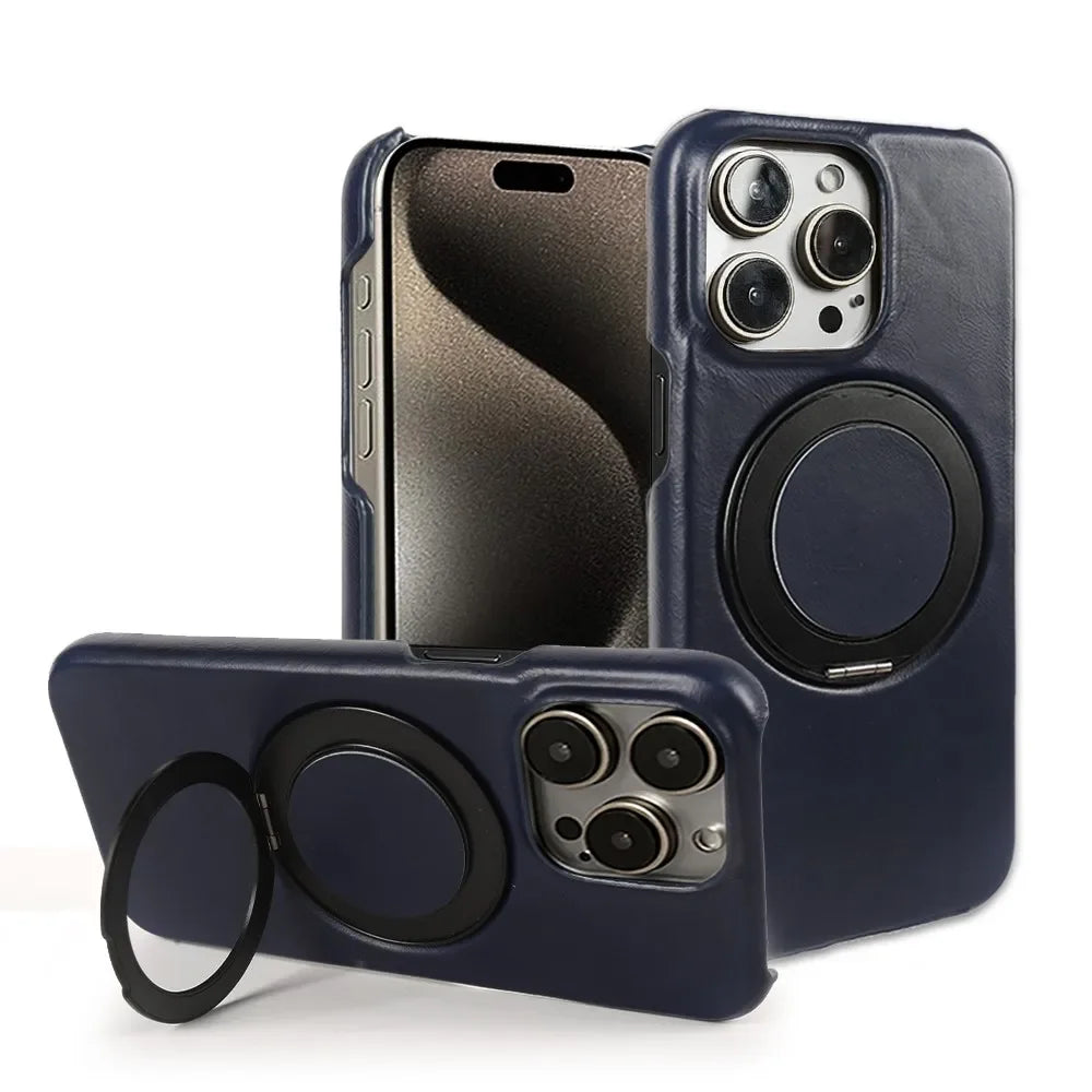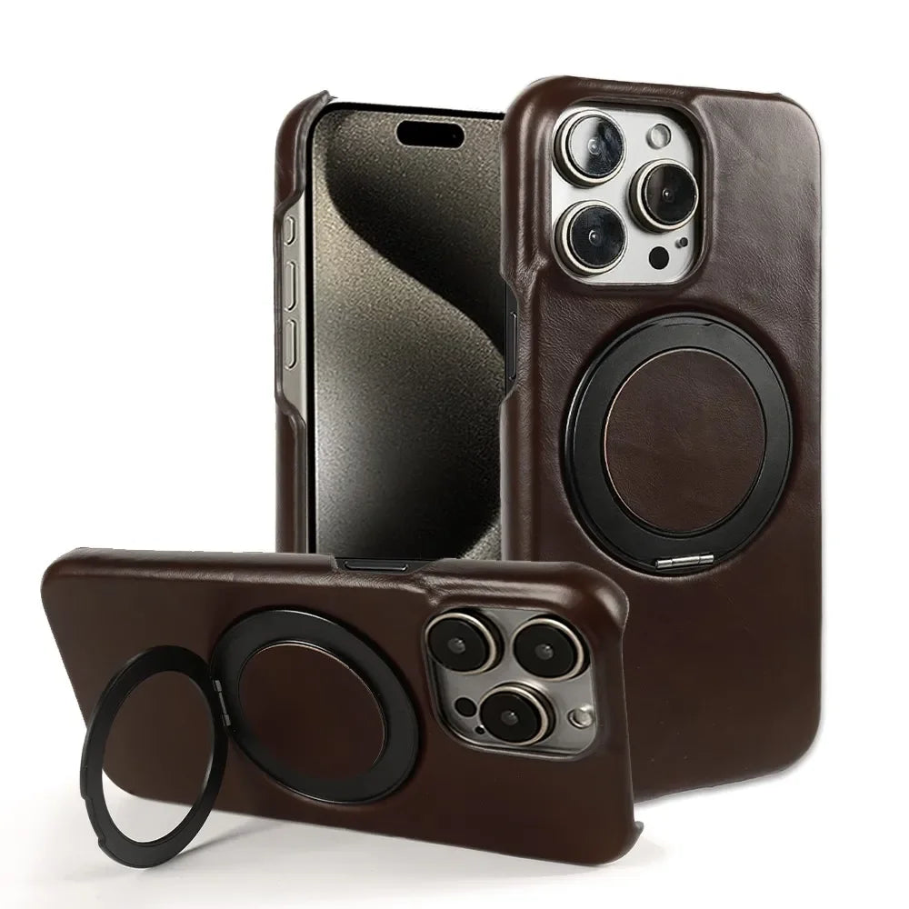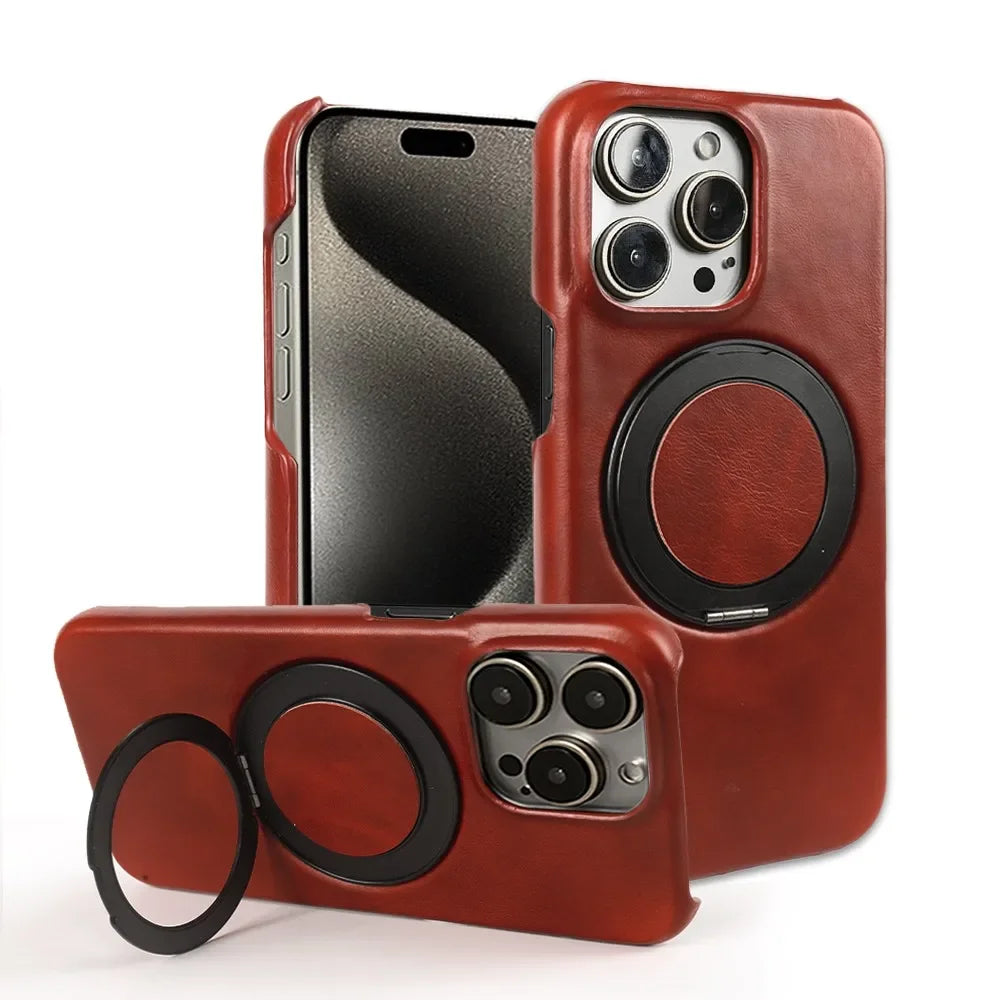 360° Rotating Magnetic Holder case: Magnetic Ring Genuine Leather Case