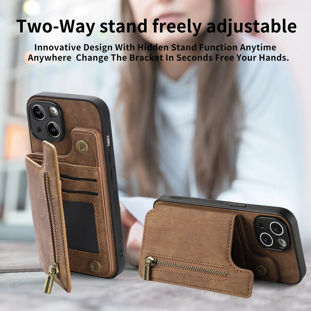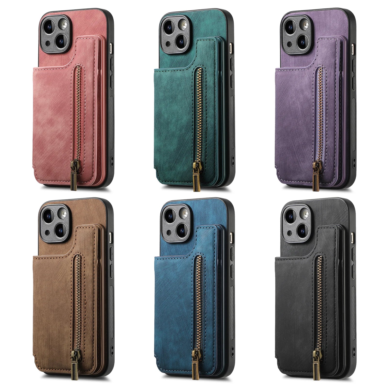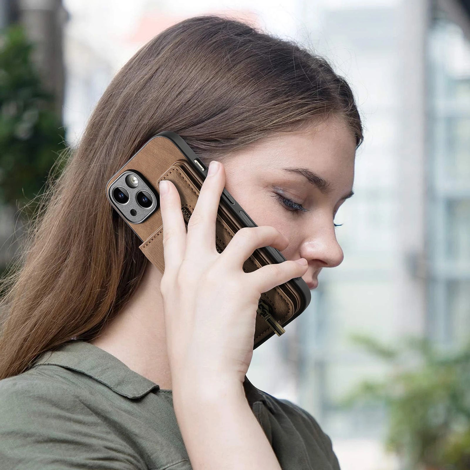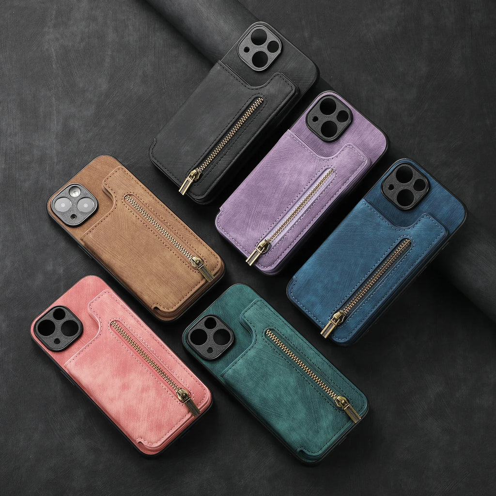 iPhone 16 Pro Zipper Cards Wallet Vegan Leather Case