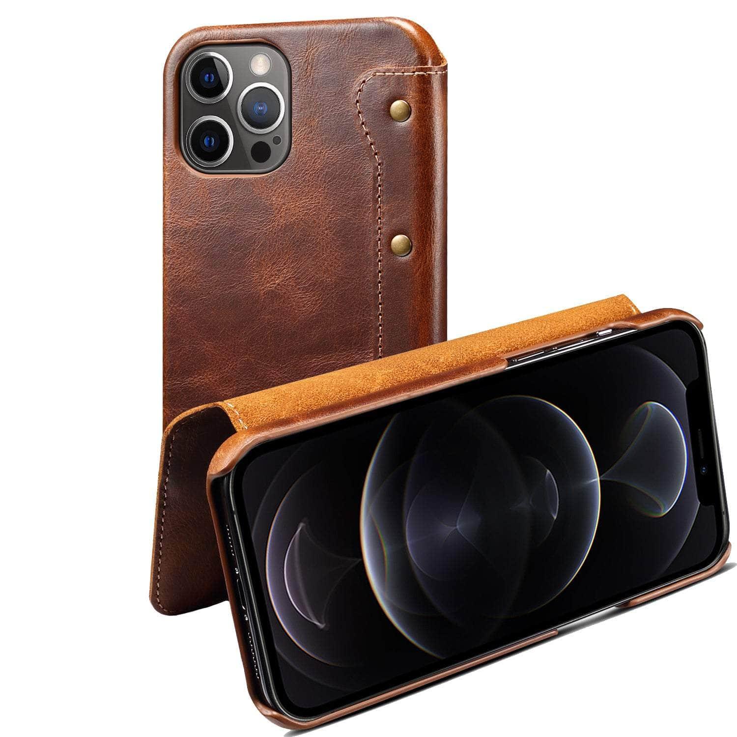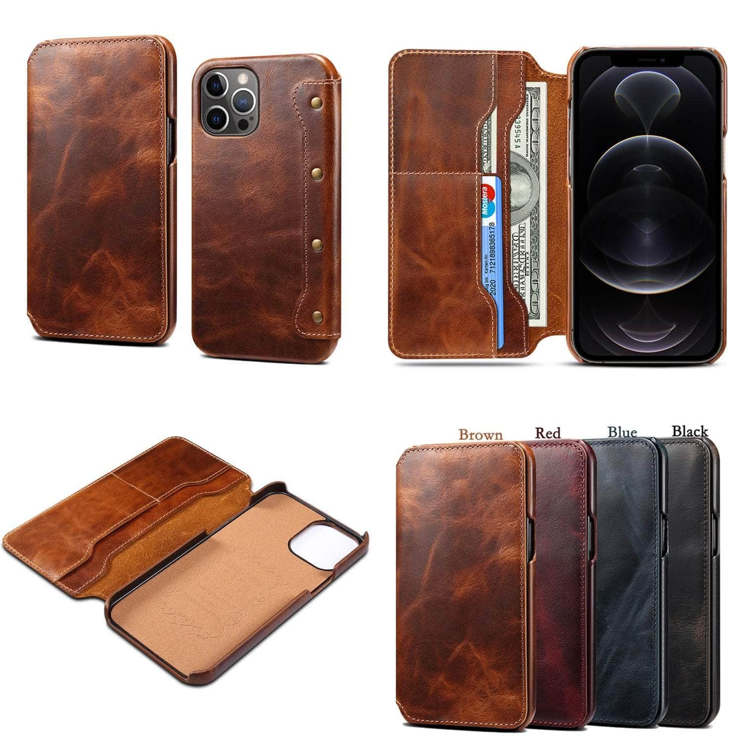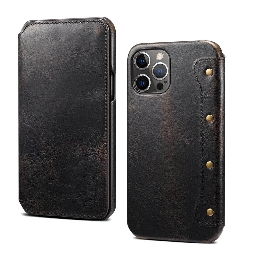 Real Leather iPhone 14 Leather Retro Wallet Case