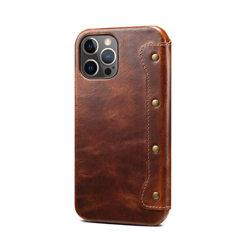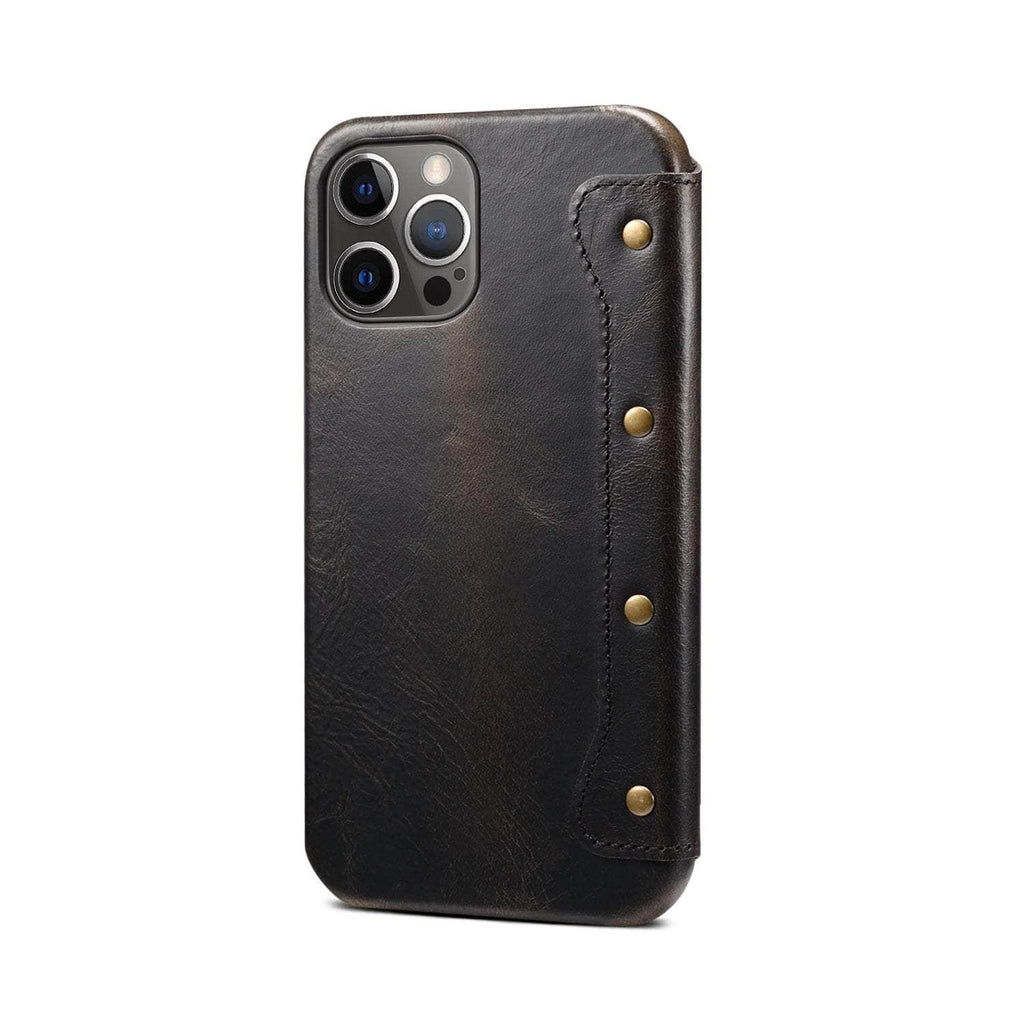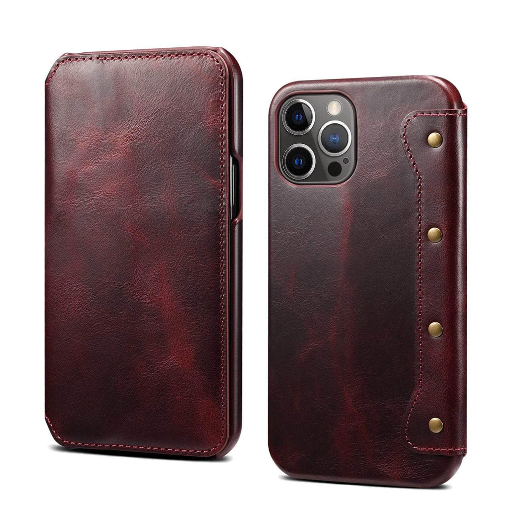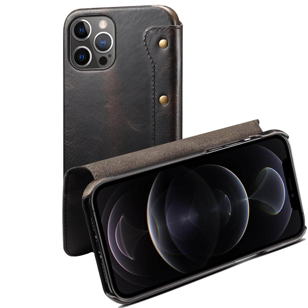 Real Leather iPhone 14 Max Leather Retro Wallet Case
