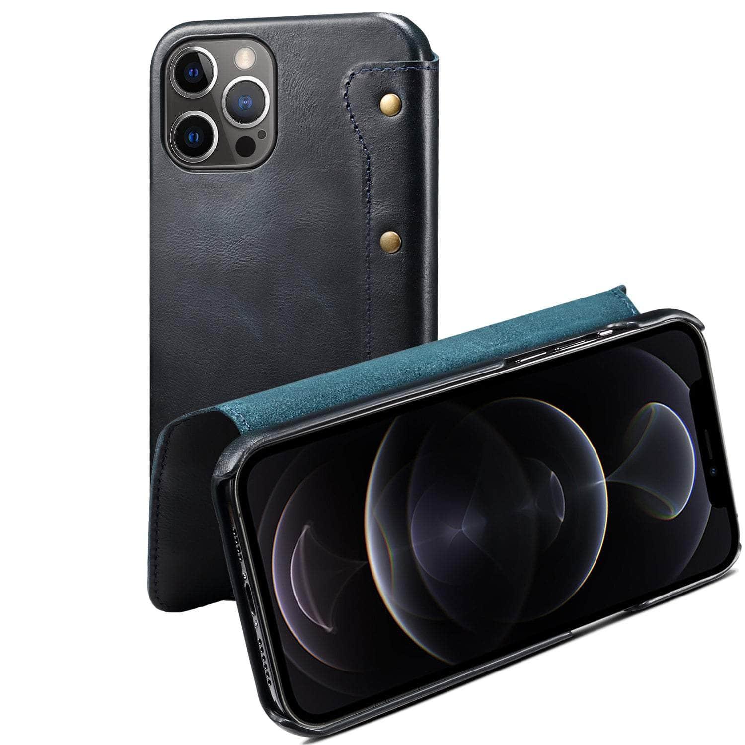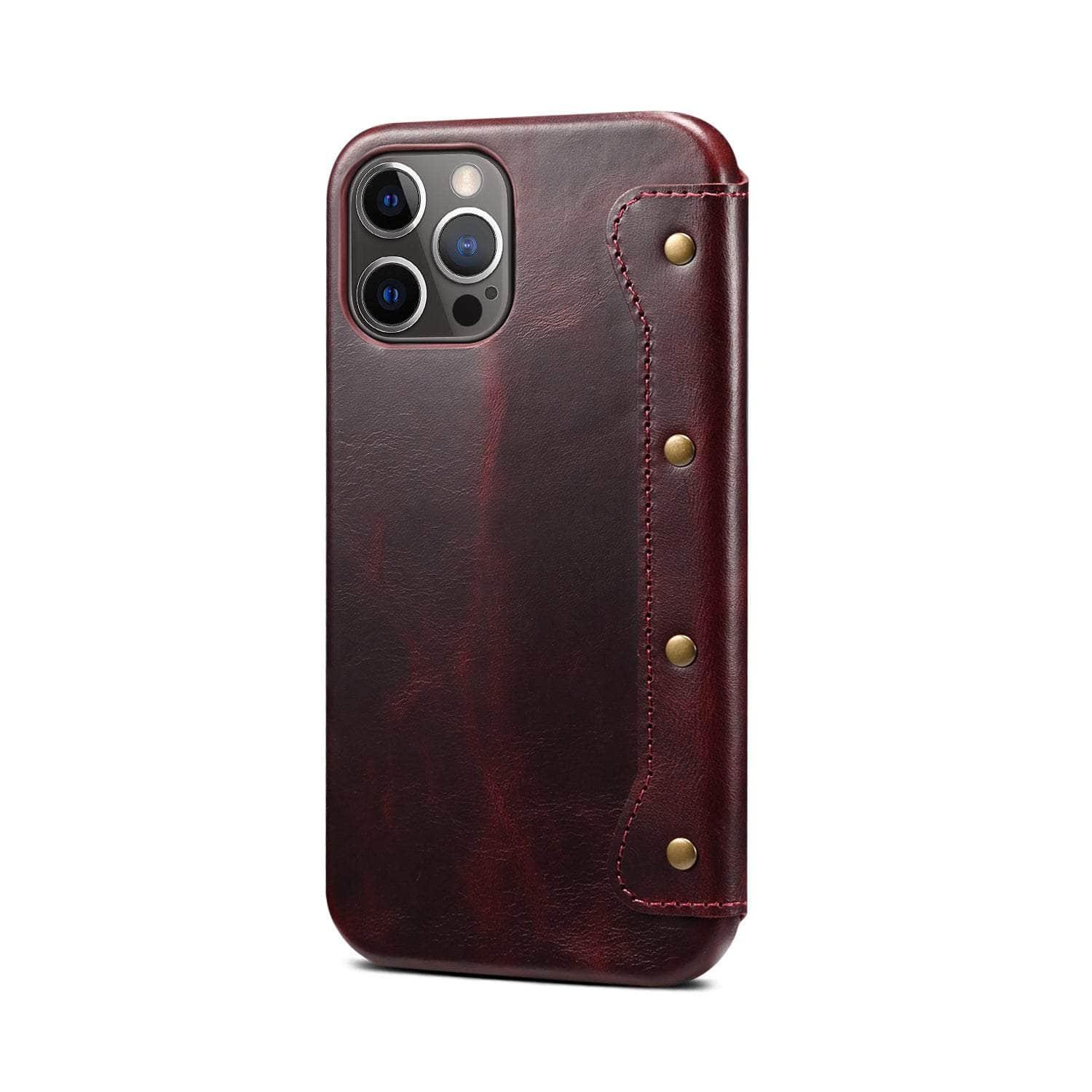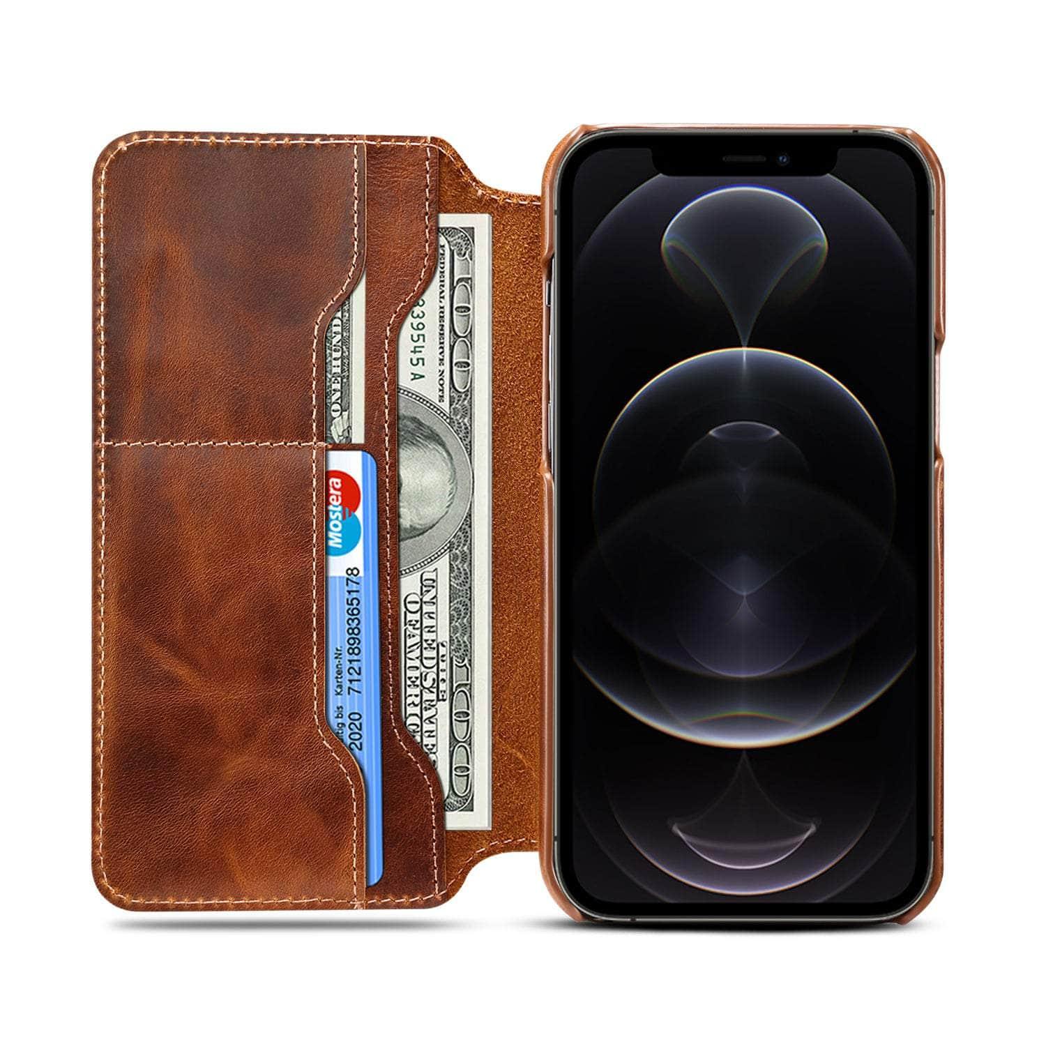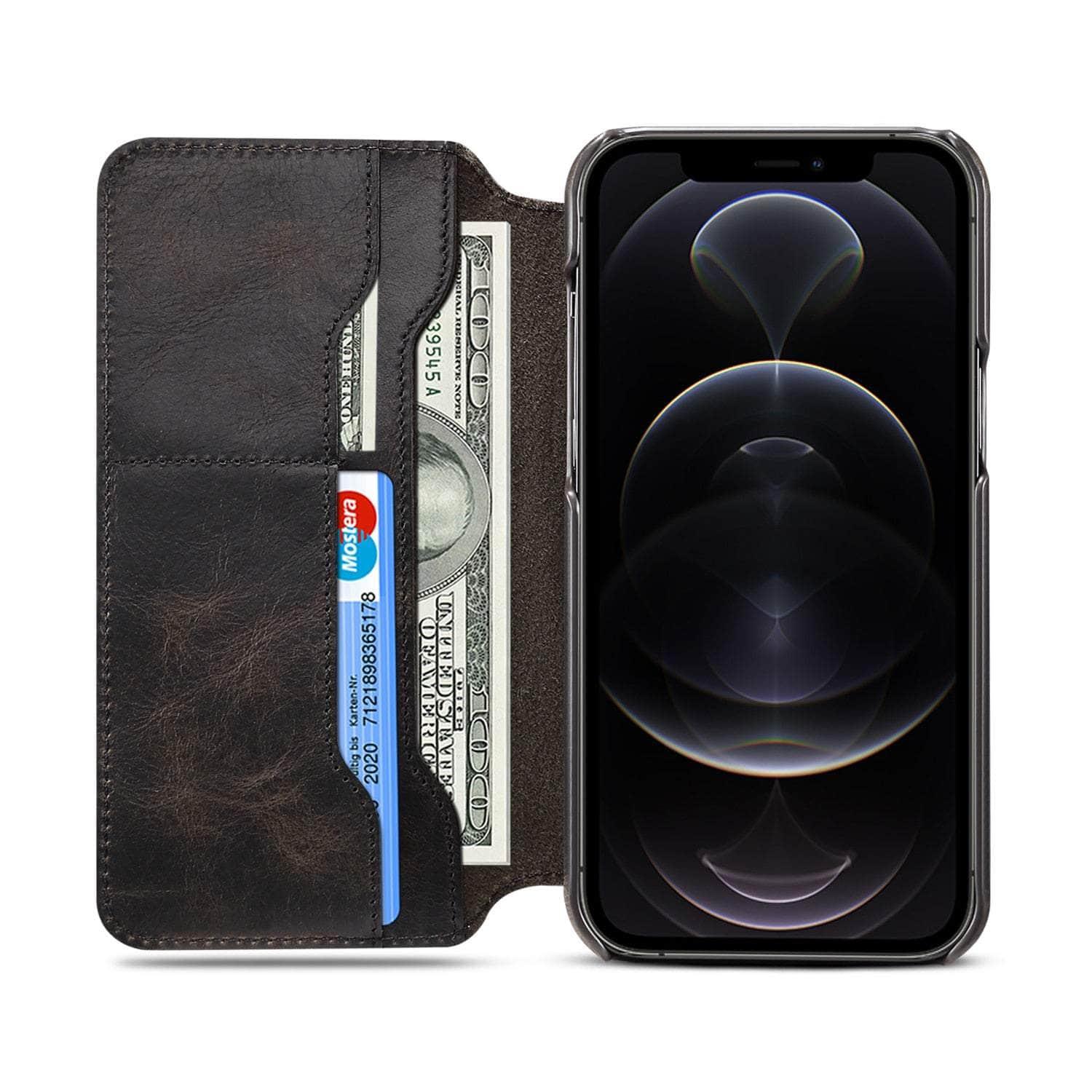Real Leather iPhone 14 Max Leather Retro Wallet Case
