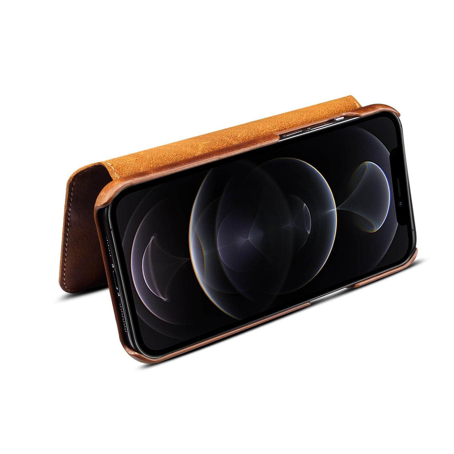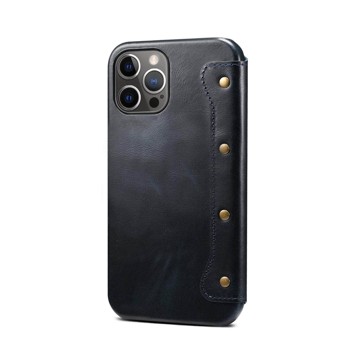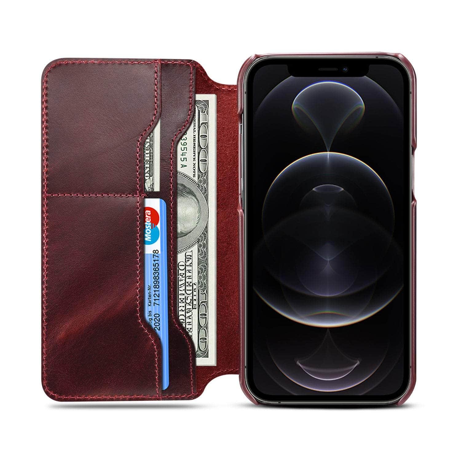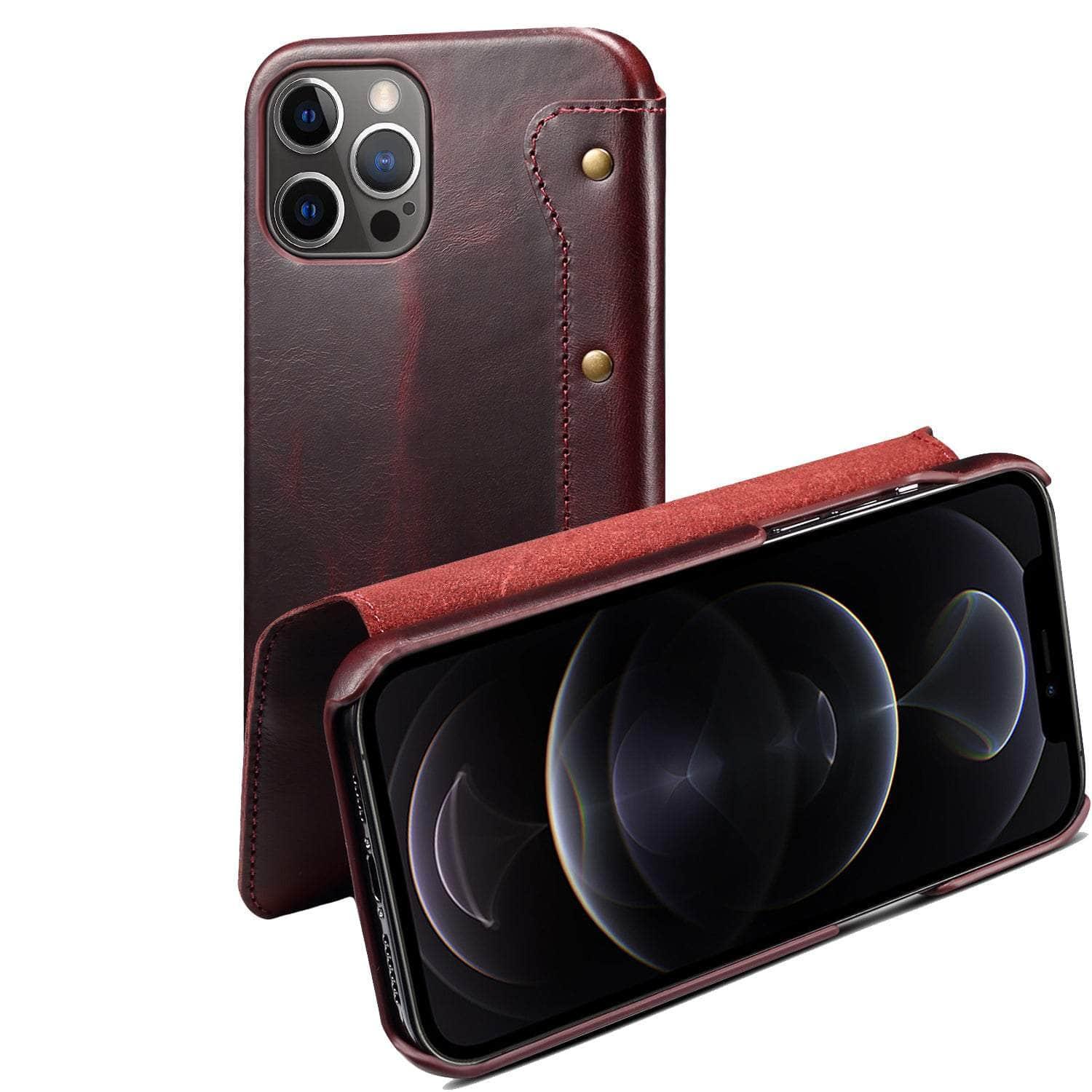 Real Leather iPhone 14 Max Leather Retro Wallet Case
