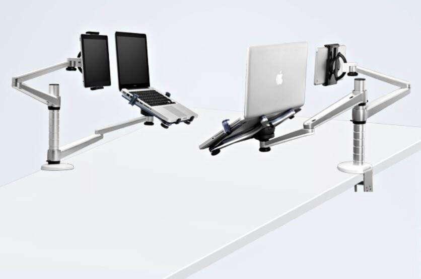 Casebuddy is proud to bring you the Tarzan Duo which holds both a laptop up to 15.6" and tablets up to 10.1". The mount is completely adjustable positioning the laptop and tablet any way you like. The C clamp mounts to nearly any surface up to 2" thick. Height adjustable from 15cm to 40cm. The elegant silver finish is perfect for any environment.