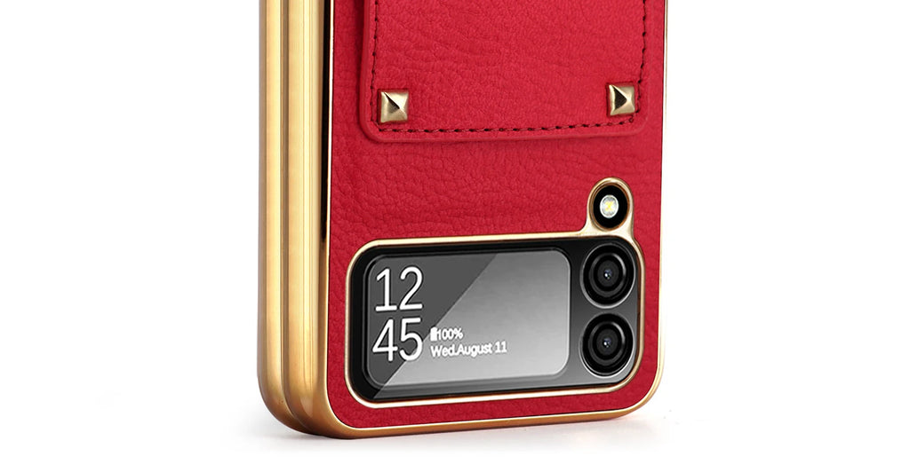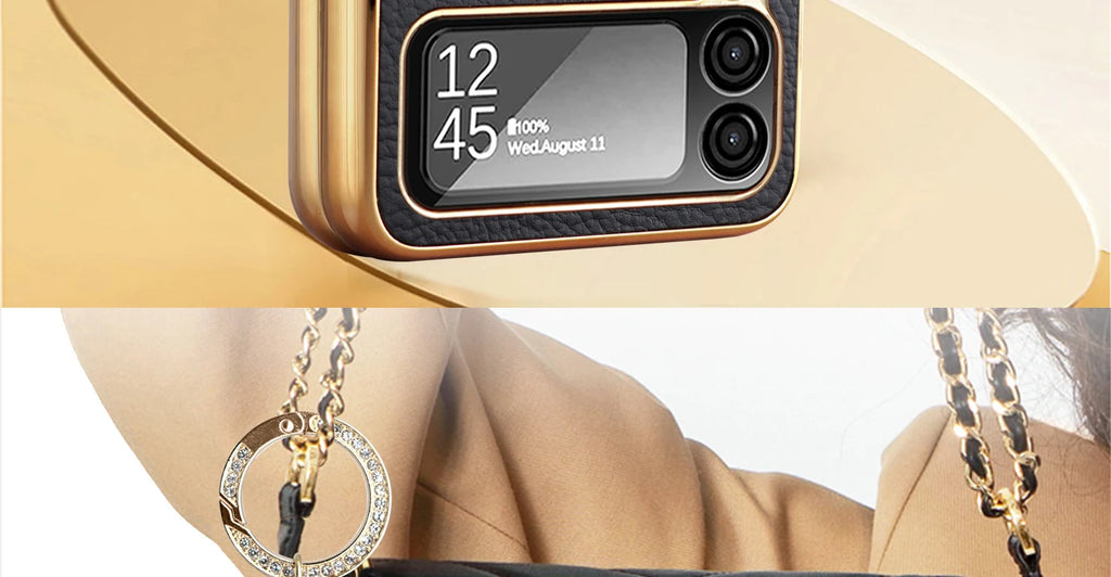 This Vegan Leather Plating Galaxy Z Flip 6 Ring Holder Case is the perfect blend of style and functionality. Made from premium vegan leather, it offers a luxurious look while providing durable protection for your Galaxy Z Flip. The 6 ring holder allows for hands-free use, making it the perfect case for on-the-go individuals.